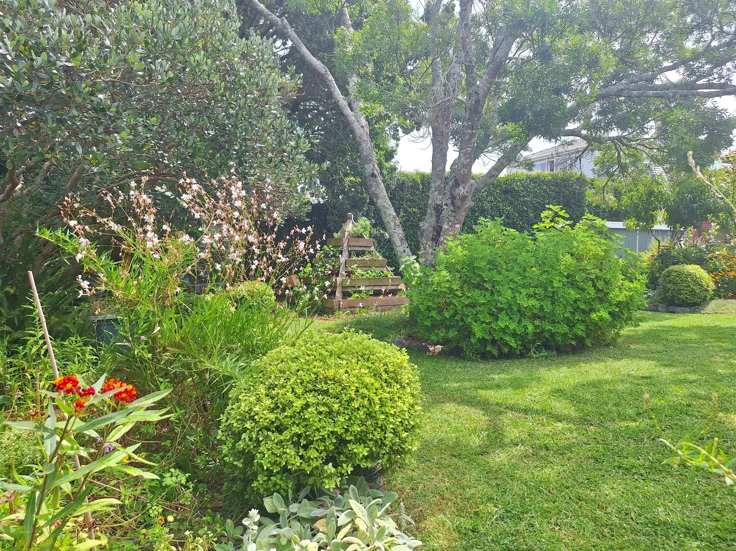 Designed as a memorial garden to the owner’s late husband, the design of this permaculture garden acknowledges the original planting as well as the new, and pays respect to the original owners who also grew a lot of food on this piece of land.