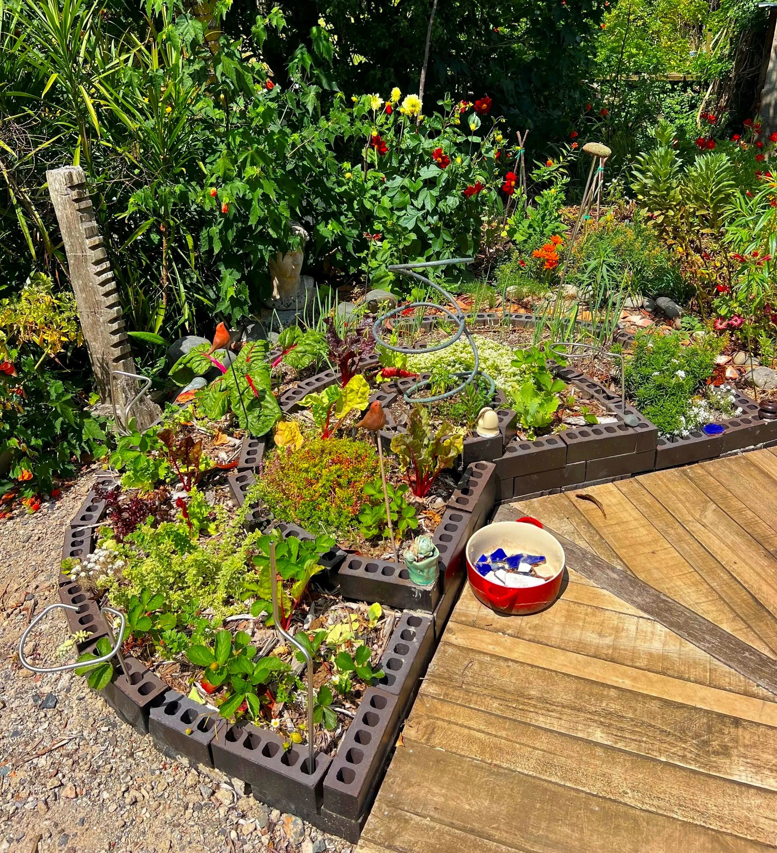 Wildlife, wellbeing, edibles, recycled materials, deep sponge soil