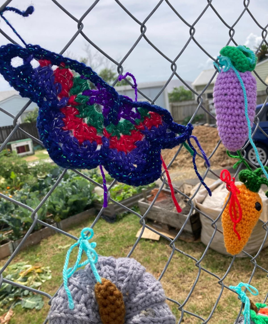 Mindful crocheting to contribute to the yarn bombed fence!