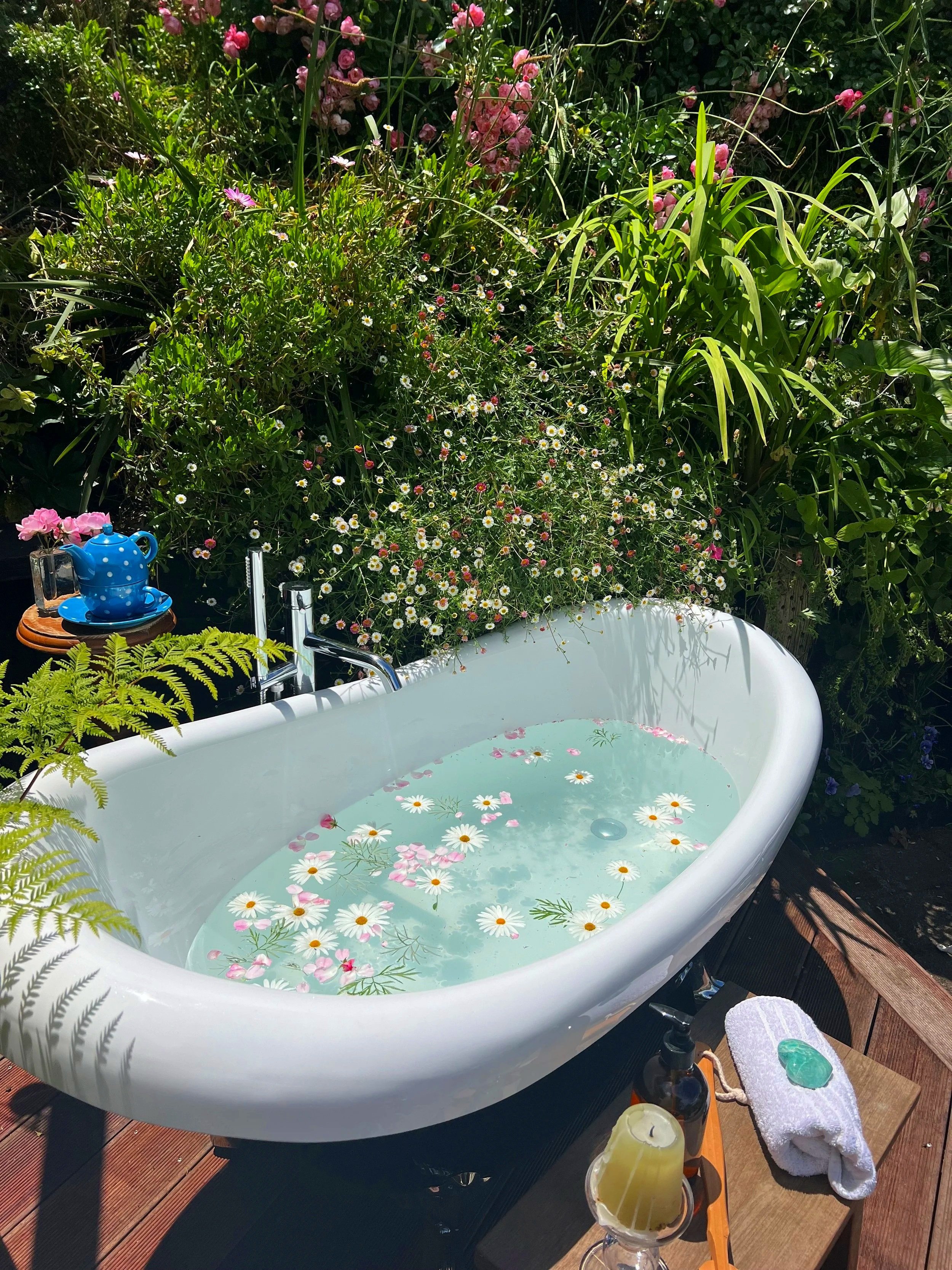 Don’t forget to see the Sustainable alternative to a chemical Spa Bath, this fully plumbed outdoor bath provides a luxurious soak with ecostore bubble bath - when finished, the water feeds the plants! No bees were harmed in the process!